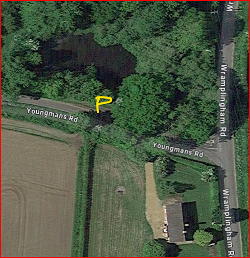 Second shift - park on the north verge of Youngmans Rd about 20m from the junction with Wramplingham Rd but taking care not to obstruct the entrance to the bungalow opposite and not to squash any toads that might be sitting there!.